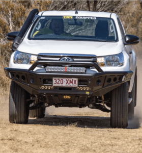 Cut to the chase with the all-new Genuine TJM Chaser Series bull bars for your Hilux. Packed with attitude and thoroughly engineered to work and play hard, the Chaser stands out in a crowd and is up to the test. Chaser features a 63mm upper tube and 50mm lower tube, which is designed to create the ideal approach angle when you’re off-road. Furthermore, the bar’s winch frame is mounted to your vehicle’s chassis to deliver optimal strength in all conditions. Each Chaser Series bar comes equipped with a steel winch mount, integrated rated recovery points and reinforced T-slots that are suitable for your Hi-lift jack. They’re even ready to kit-out with driving and off road Chaser Series work lights through integrated mounting options.